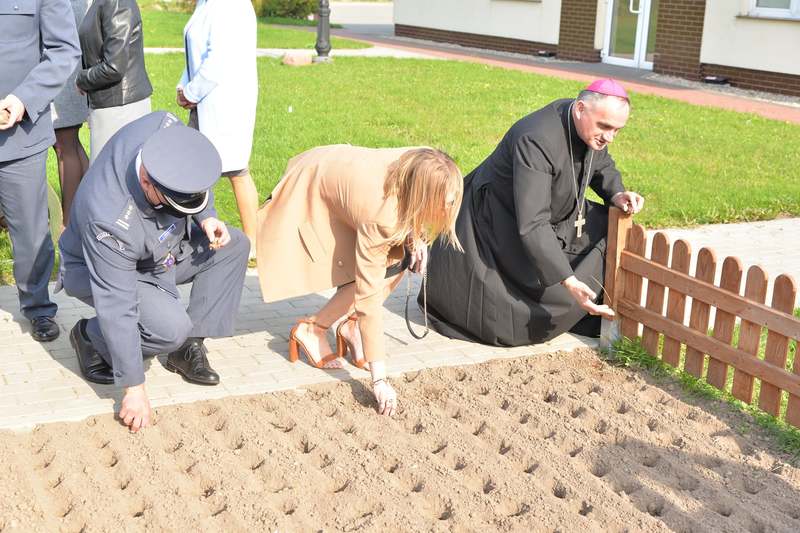 Pobłogosławił także ogrodową kapliczkę z figurą Matki Bożej Fatimskiej, wykonaną przez osadzonych Zakładu Karnego w Czarnem. Ponadto przedstawiciele Regionalnej Dyrekcji Lasów Państwowych w Szczecinku podarowali placówce domki lęgowe dla ptaków i owadów. Zarówno służba więzienna jak i leśnicy od lat wspólnie wspierają darłowskie hospicjum.