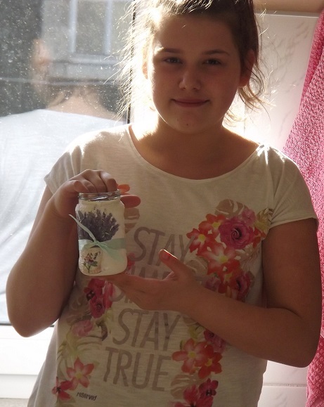 Zaproponowała dzieciom wykonanie ozdobnych pojemników. Za bazę posłużyły słoiki. - Każde dziecko wycinało wzór z serwetki i za pomocą kleju nakładało ją na słoik - wyjaśnia Anna Cherbetko, opiekunka. Przyznaje, że efektowna technika nie okazała się bardzo trudna i dzieci bez trudu wykonały zadanie. - Bardzo się starały, aby ich słoiki ładnie się prezentowały - chwali podopiecznych. - Wyszło, jak zawsze: przepięknie.